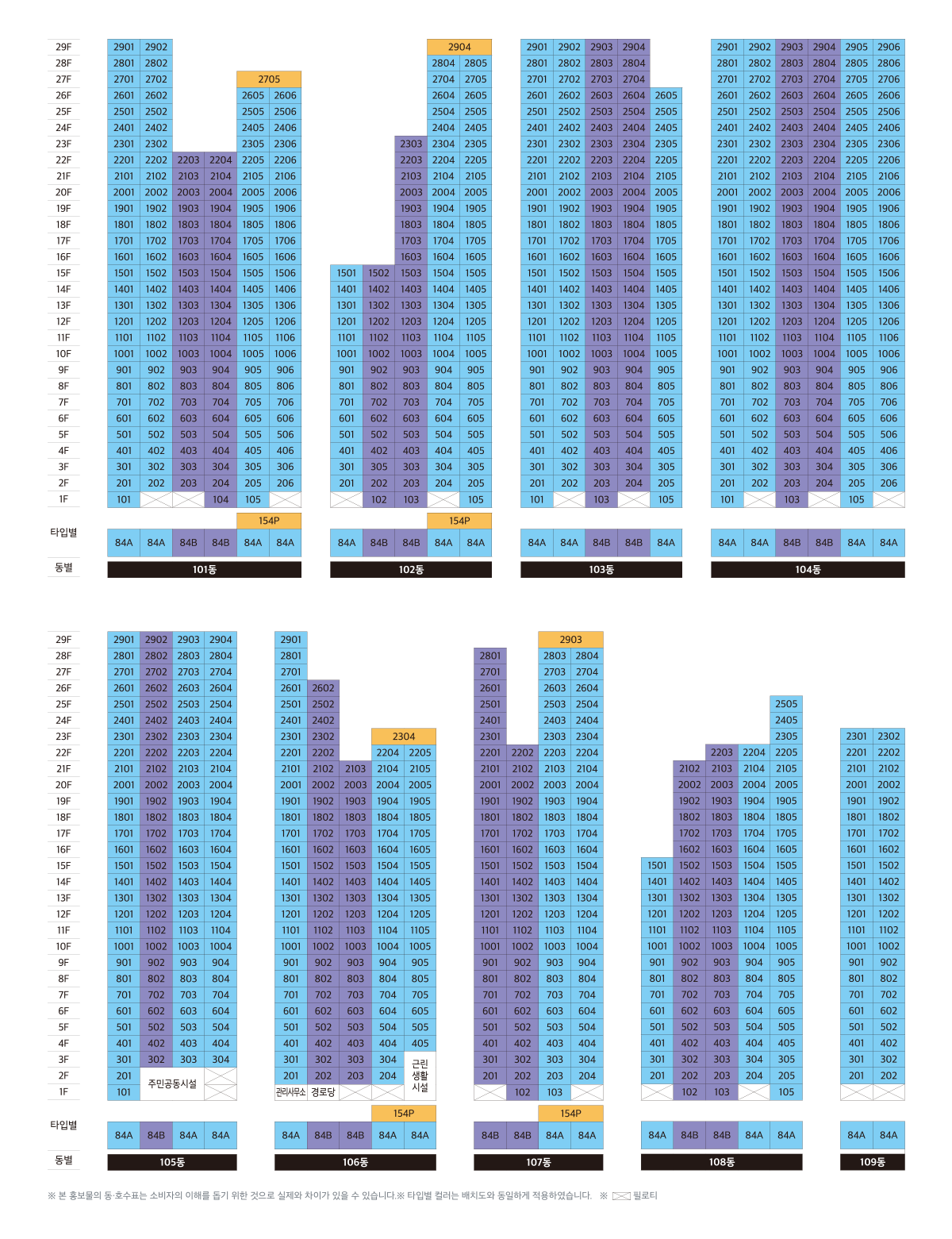 이편한세상 사천 스카이마리나 단지 배치도 및 동호수 배치도
